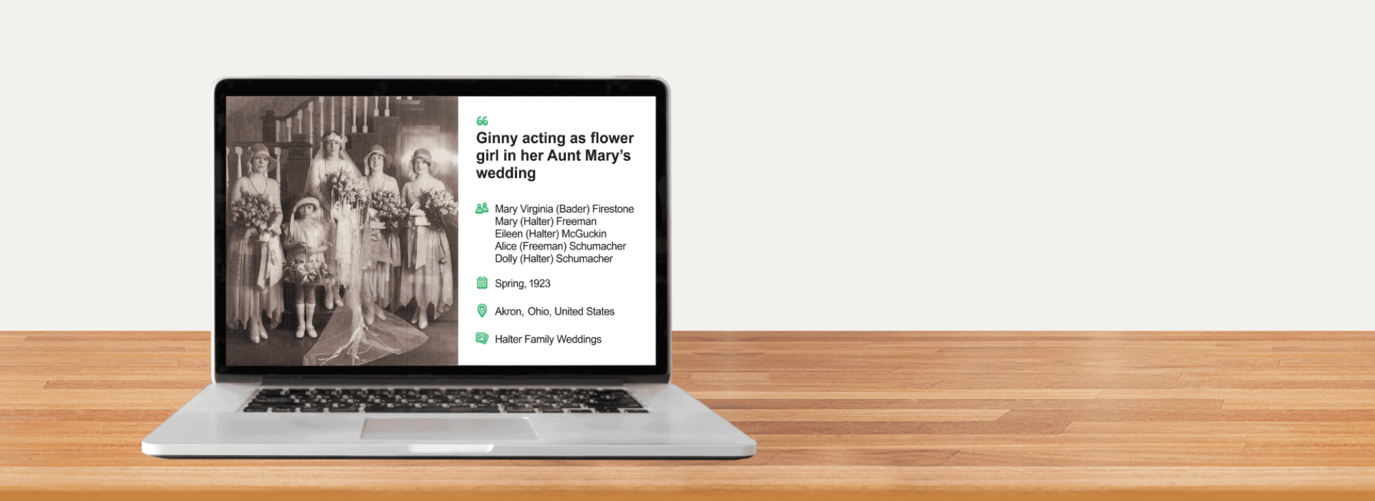 Post to Facebook, Ancestry, etc. with the details you choose and the photo will tell it’s own story for you. We call this a memory stamp. You can also post the photo with no details!